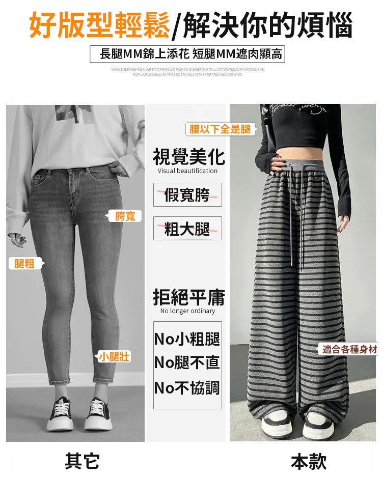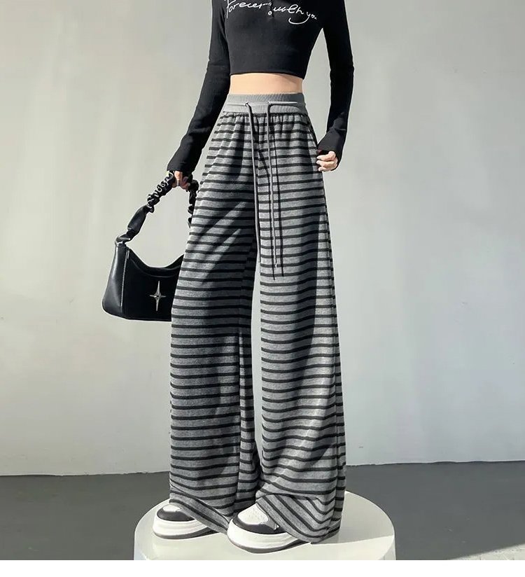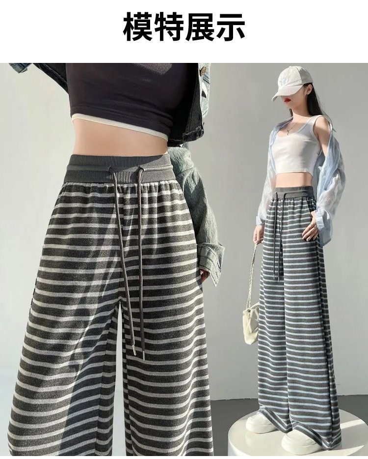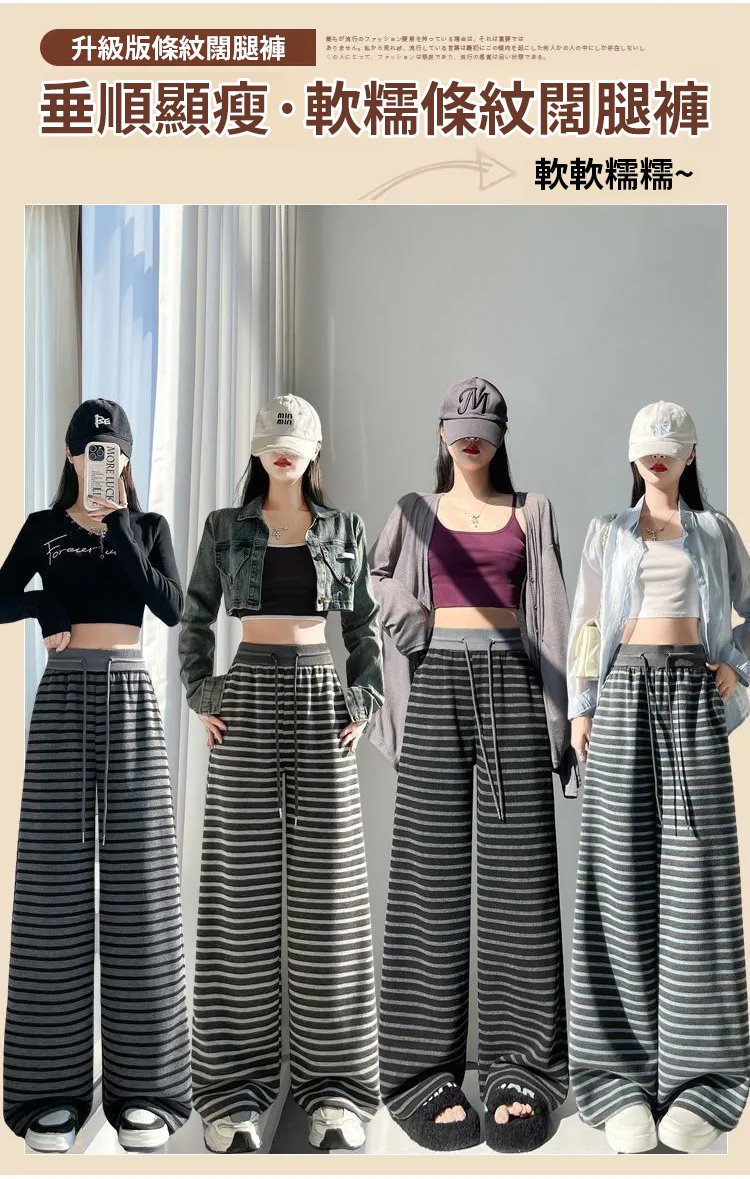 流行條紋寬褲女